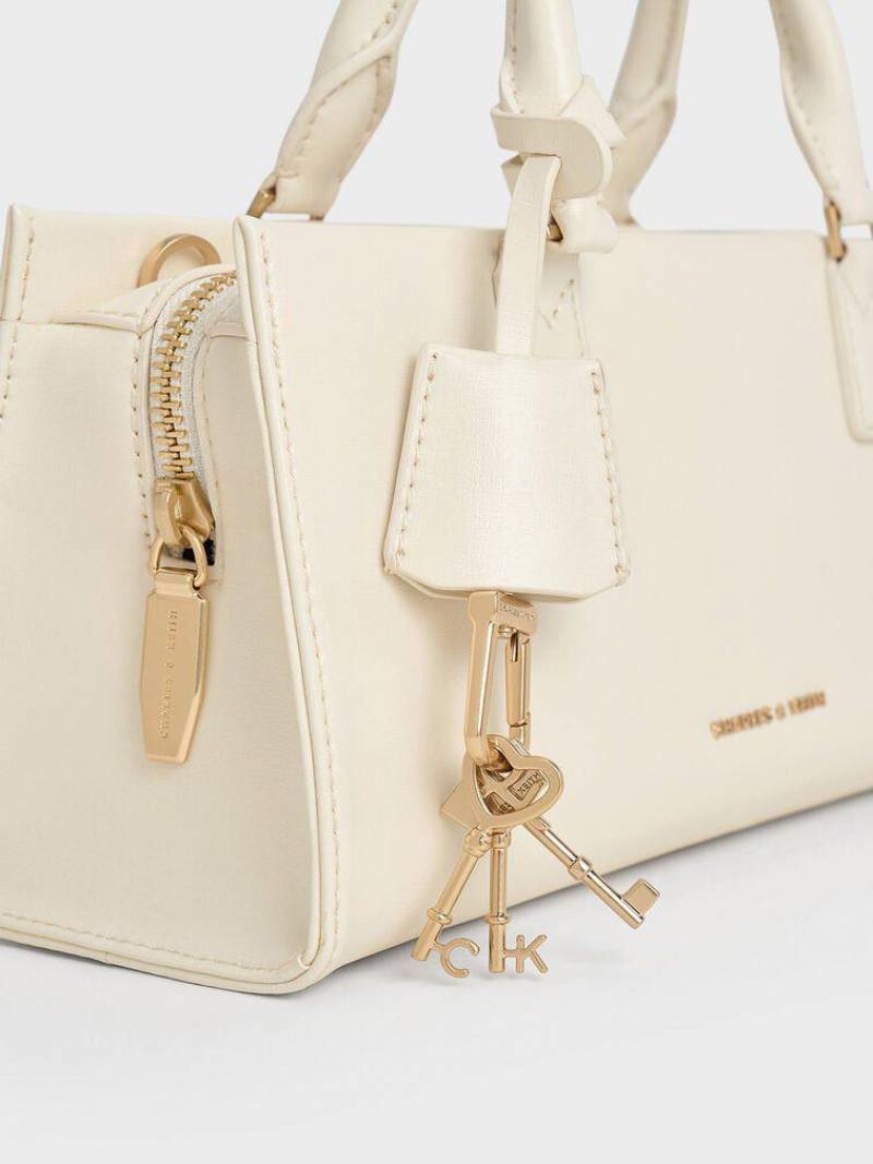 Charles keith Sabine Knotted-Handle Trapeze Tote Bag - Jet Black with og box 5737