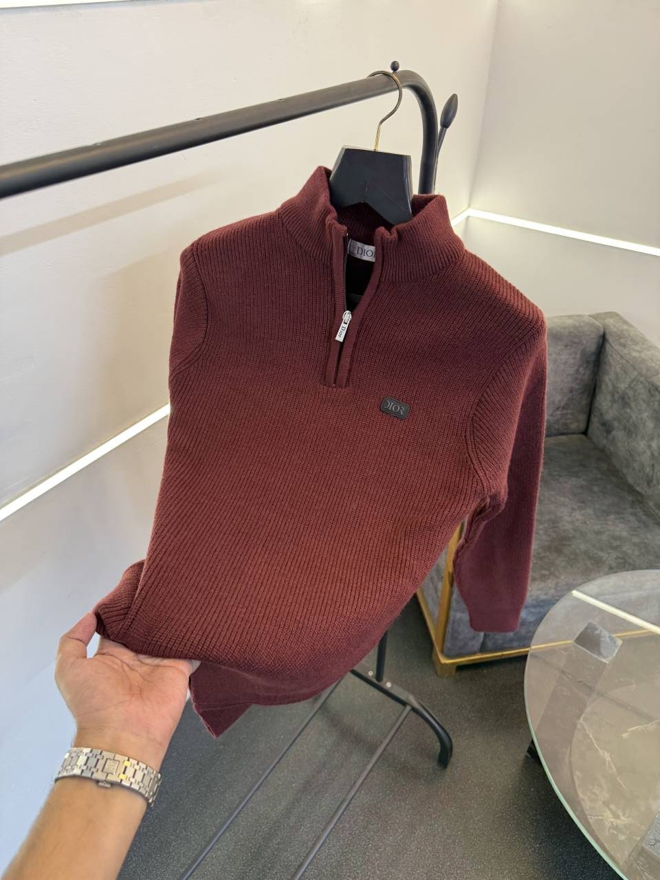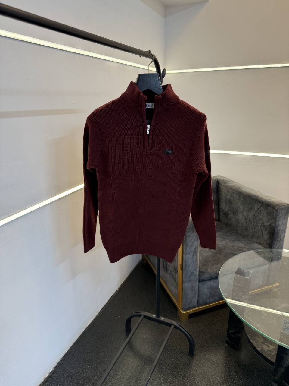 Dio r imported yarn soft feel knitted half zip sweater maroon