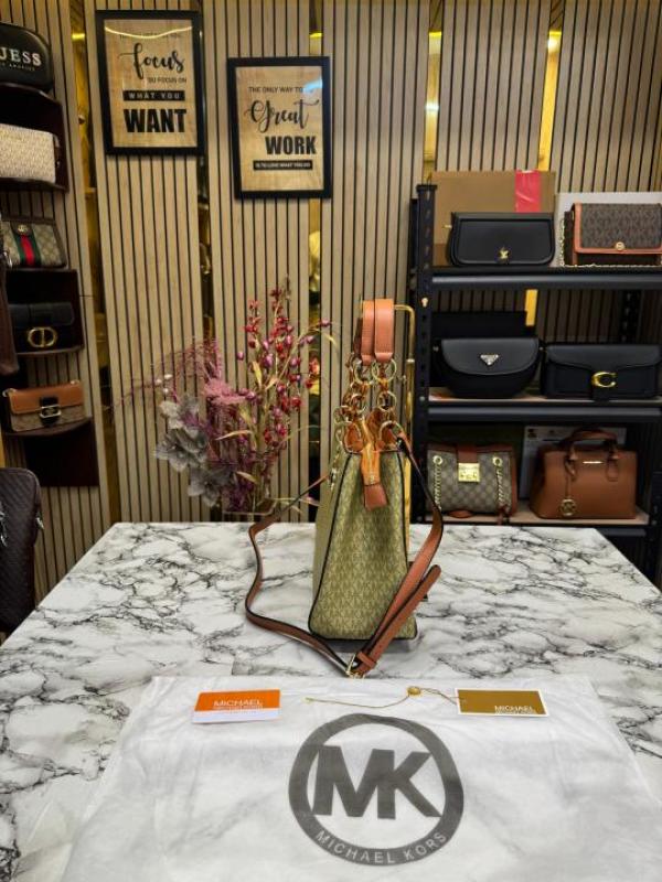 Michael_Kors Cynthia Signature Satchel Bag With Dust Bag (Apricot)