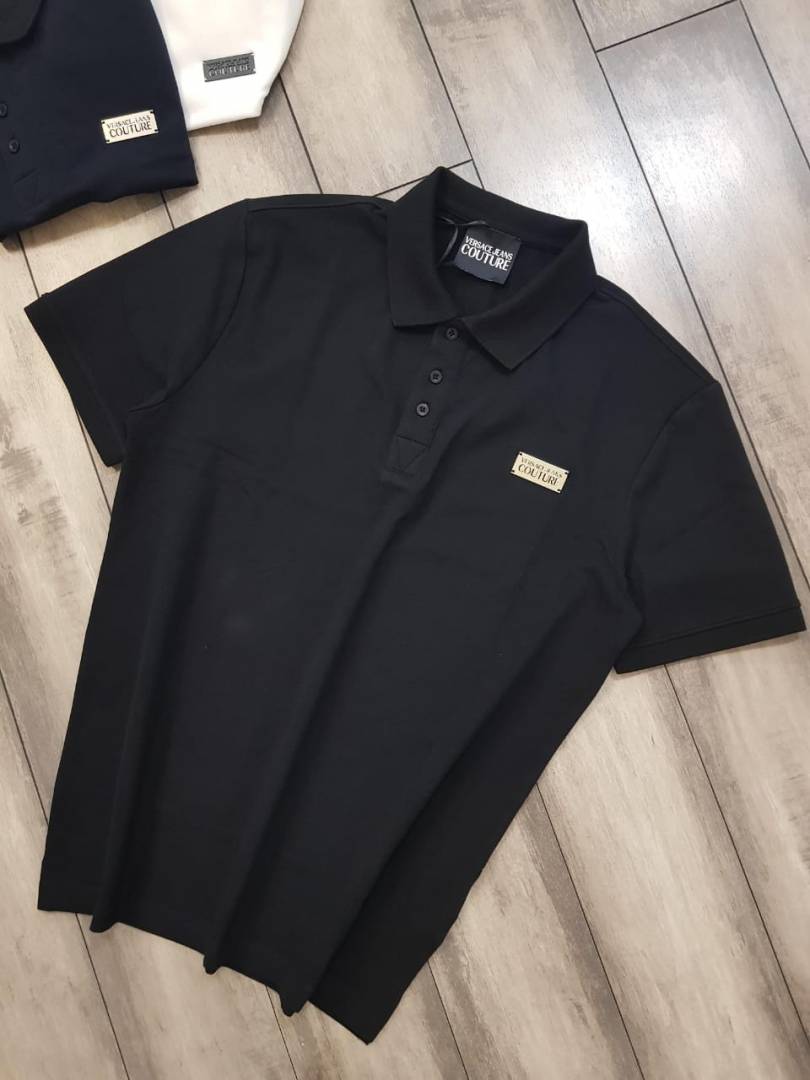 Versace Black Imported Metal Logo Collar Neck Premium Polo T-shirt F2638-BL
